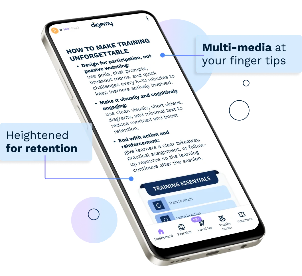 With Digemy, our staff can access adaptive learning modules from their phones - anytime, anywhere. The gamified learning experience makes the process engaging, turning training into a challenge to be mastered rather than a task to be completed. Points, leaderboards, and progress tracking foster healthy competition and drive consistent participation across teams.